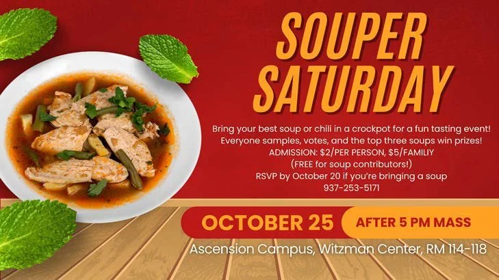 If you plan to bring a crockpot of soup, RSVP to the Ascension Parish Office at 937-253-5171 by October 20, 2025.